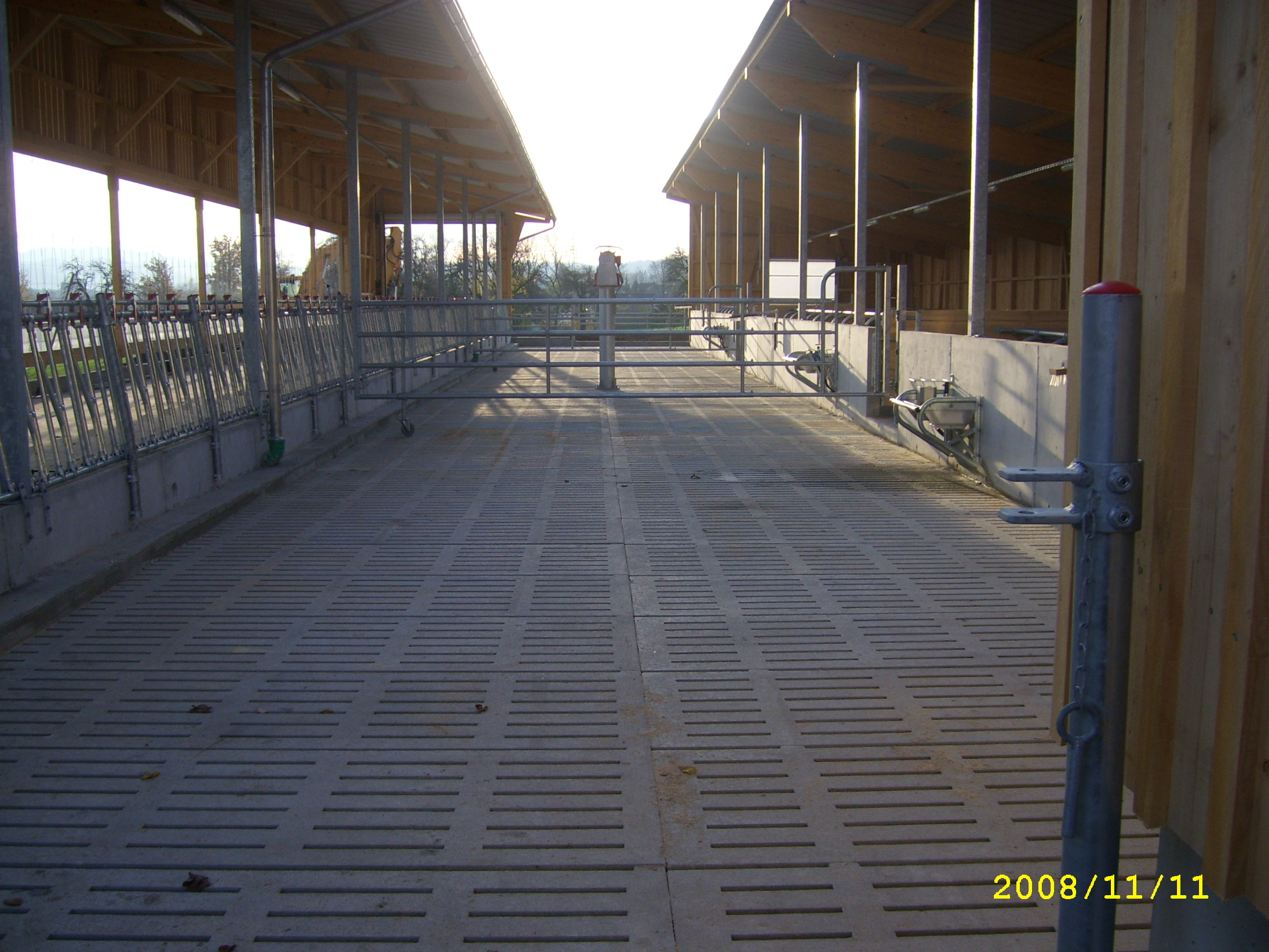 Laufhof mit Spaltenboden, darunter 750m3 Güllenloch, Rührwerk Rotospeed